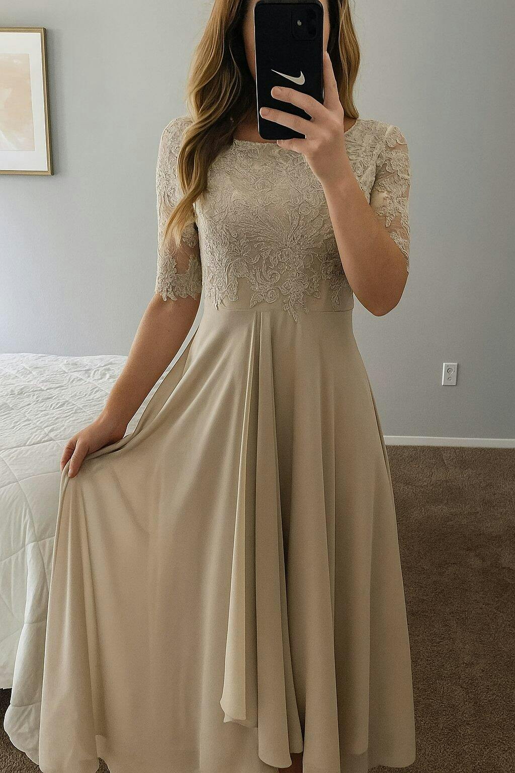 Abendkleid mit Spitzenoberteil für Damen – elegant & fließend