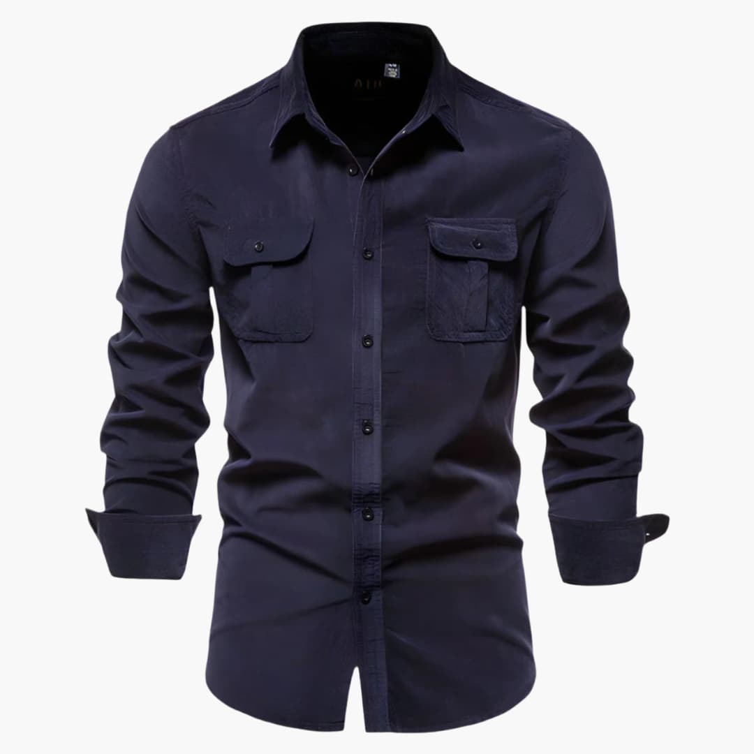Herren Langarmhemd mit Knopfverschluss und Brusttaschen