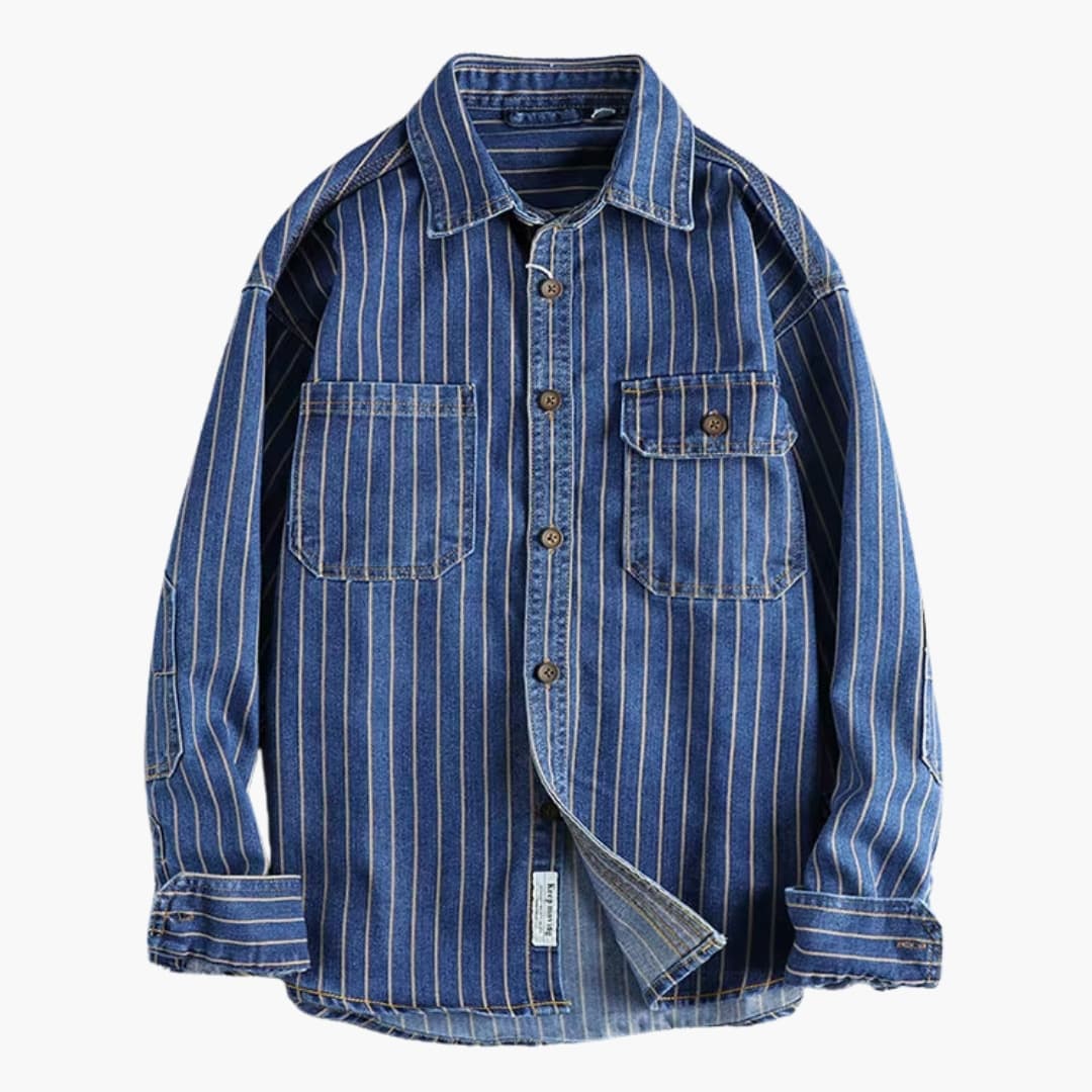 Herren Langarmhemd mit Knopfleiste und gestreifter Oberfläche