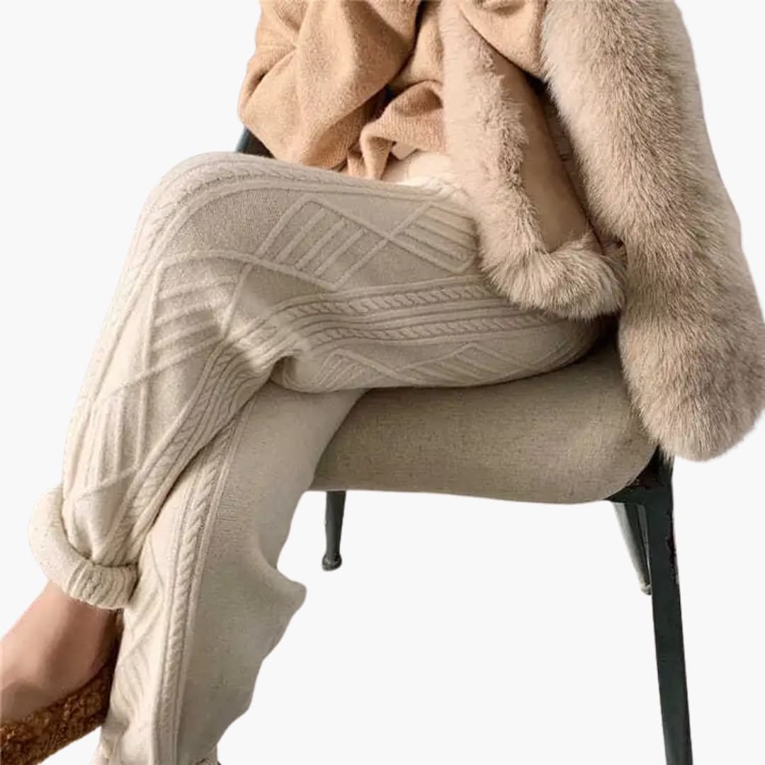 Damen Strick-Jogginghose mit Rippenstruktur und elastischem Bund