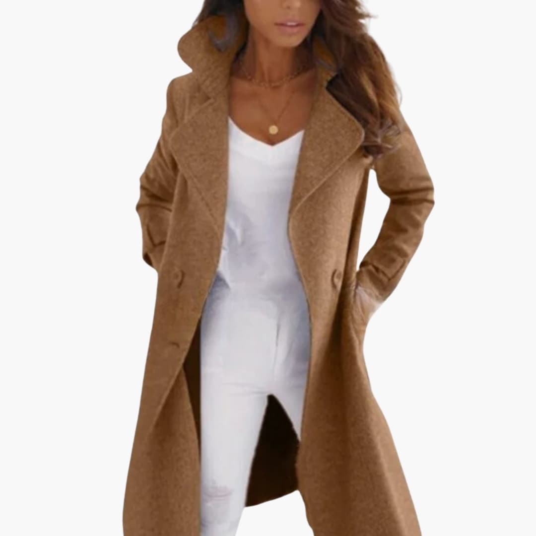Damen Langmantel mit Umlegekragen und geraden Ärmeln