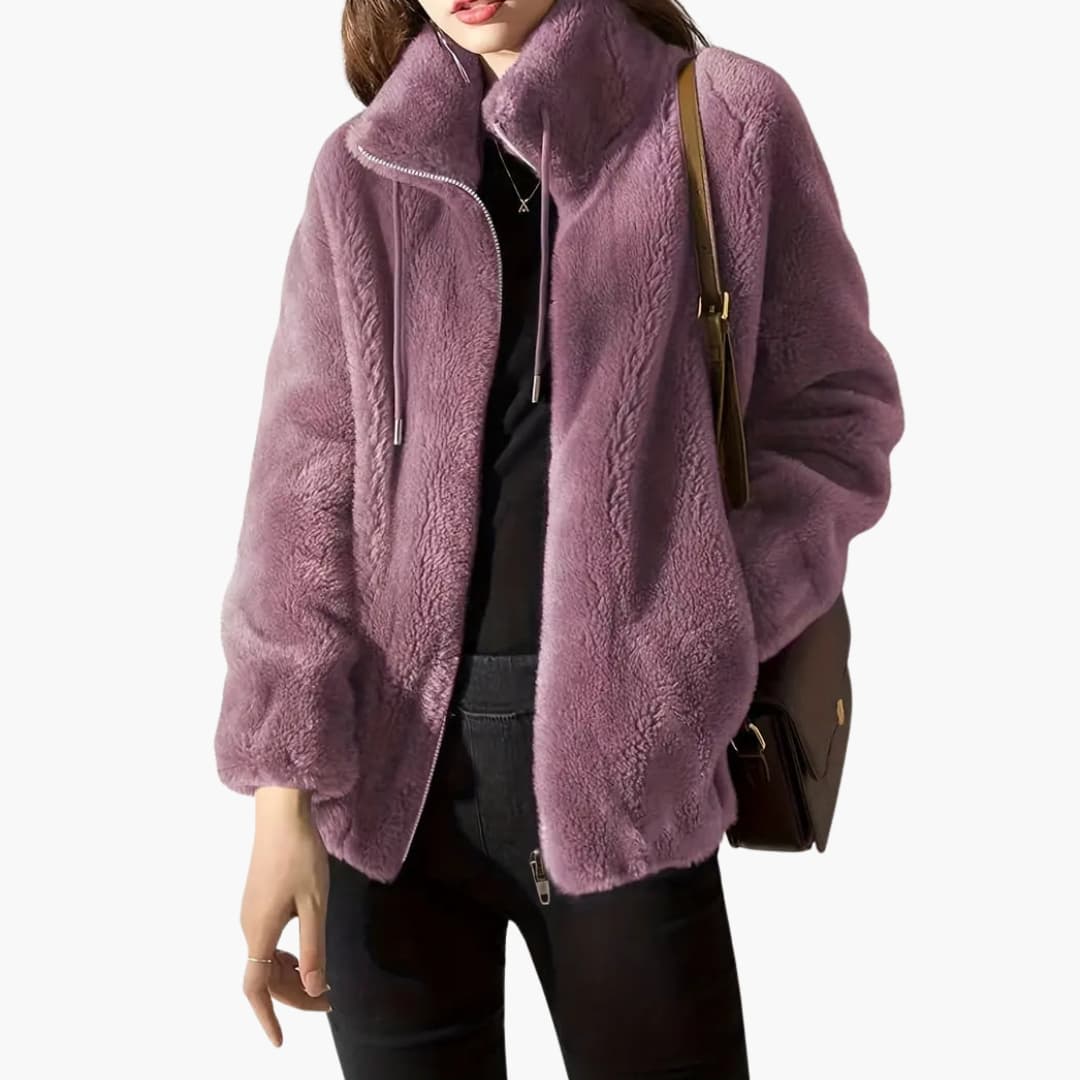 Damen Teddy Mantel mit Frontreißverschluss und Kordelzugsaum