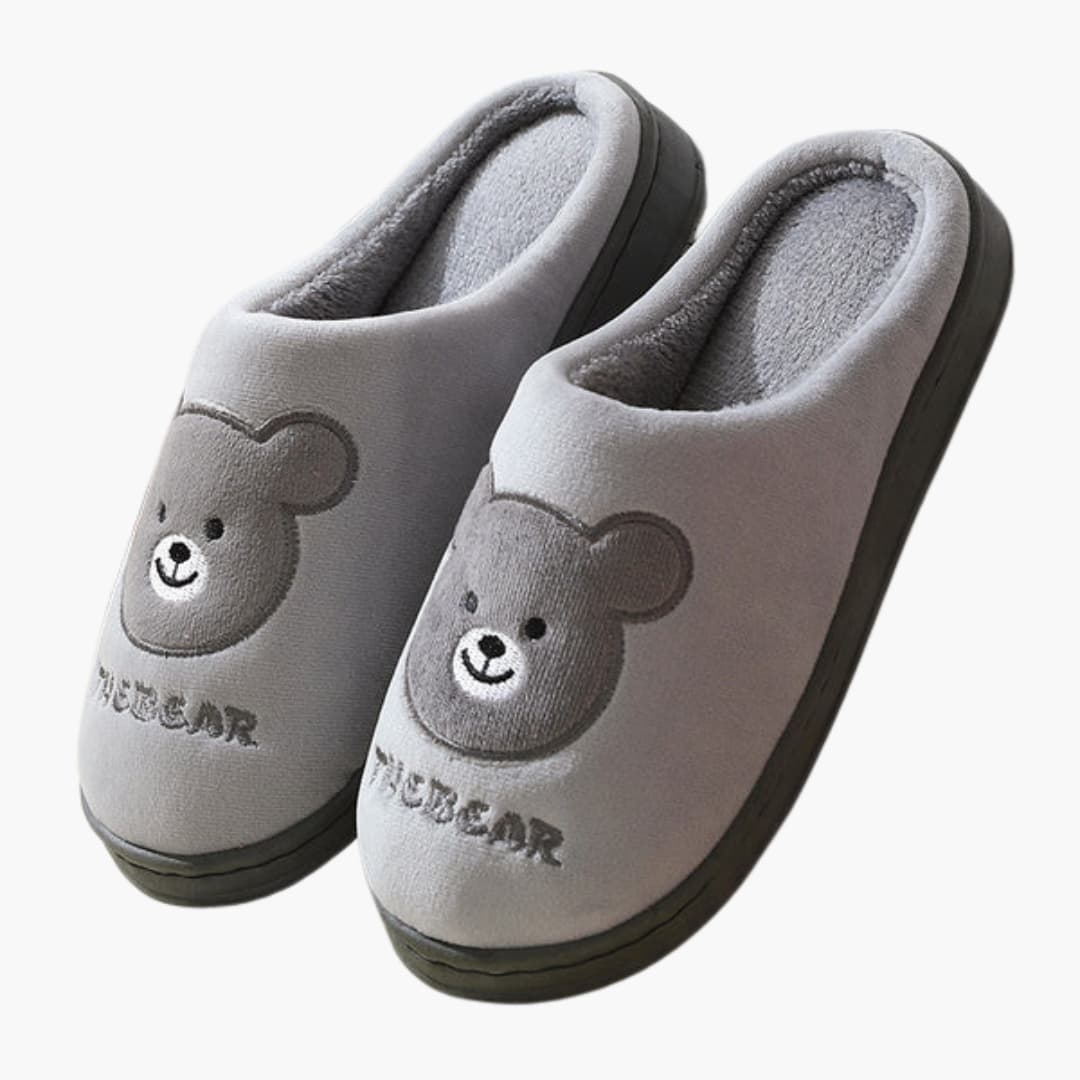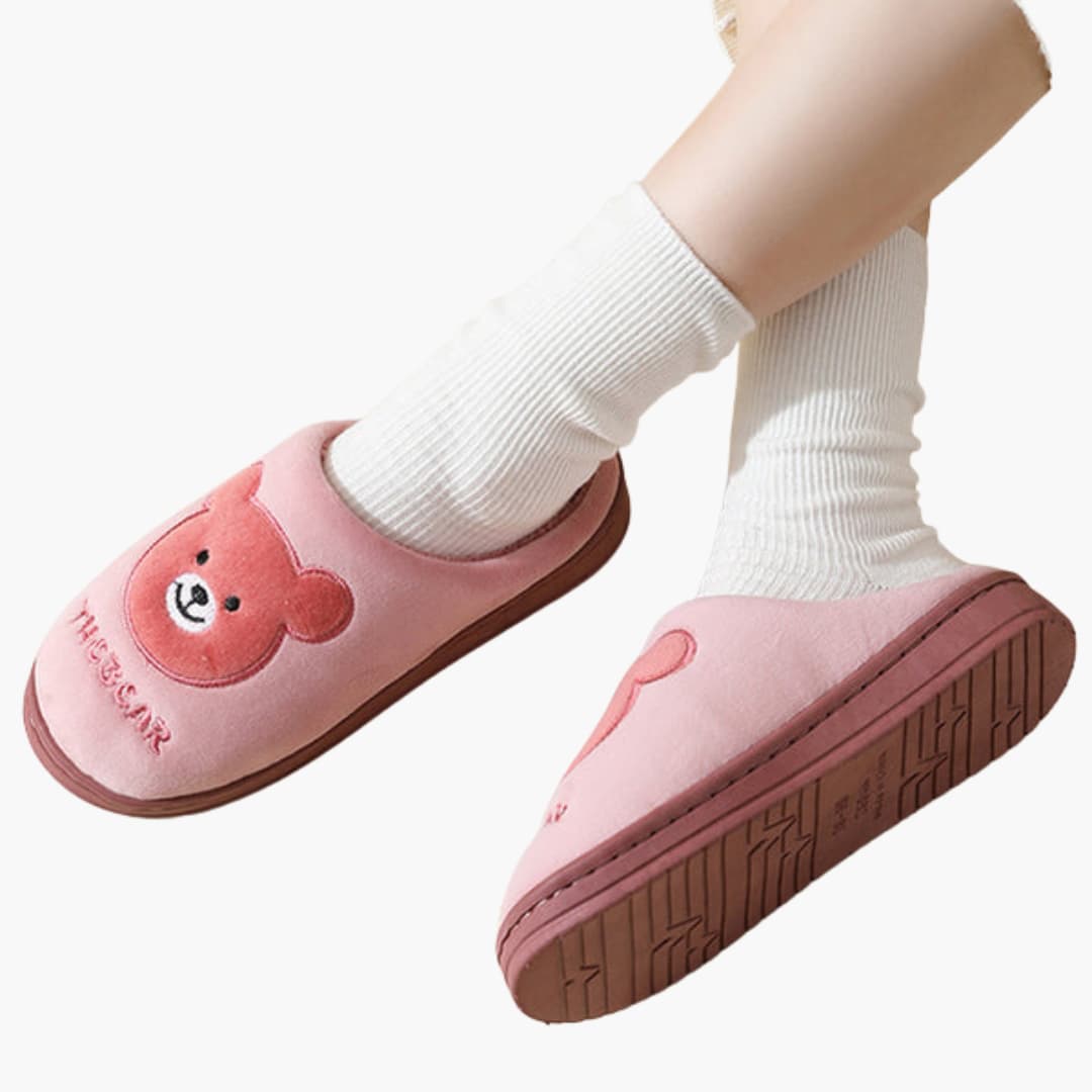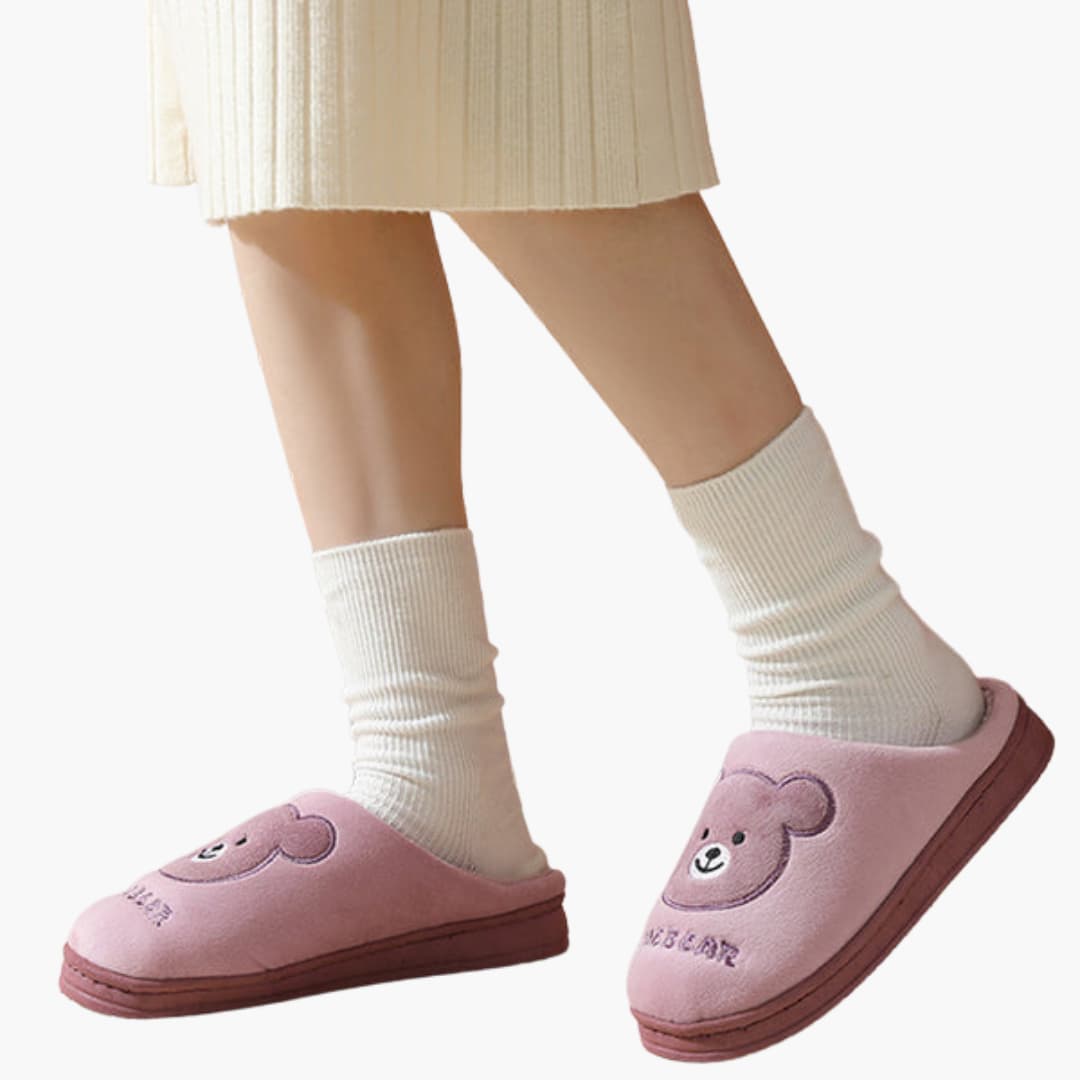 Schlupfhausschuhe für Damen mit Bärenstickerei und Plüschinnenfutter