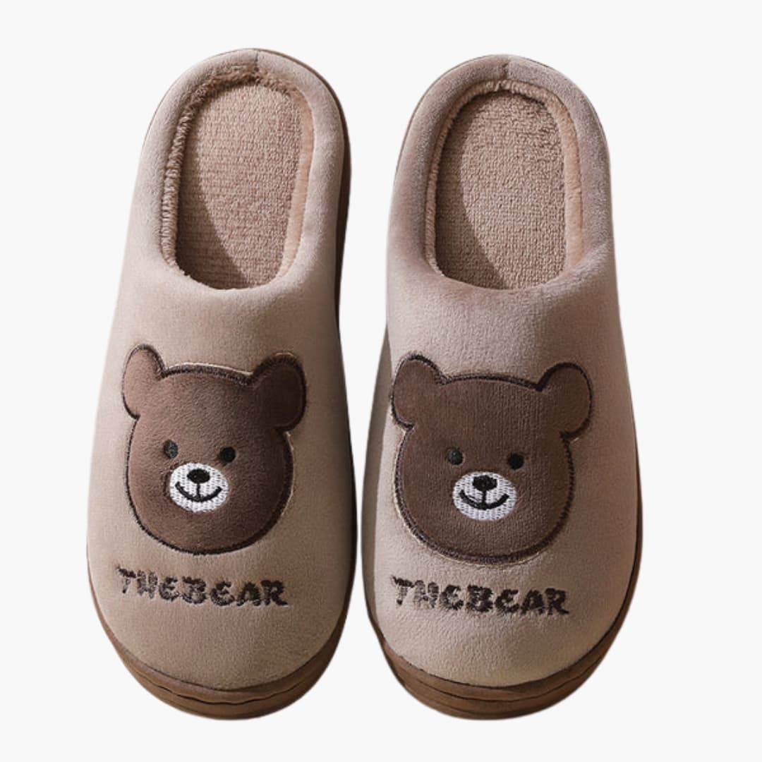 Damenhausschuhe mit Plüschfutter und Bärenstickerei