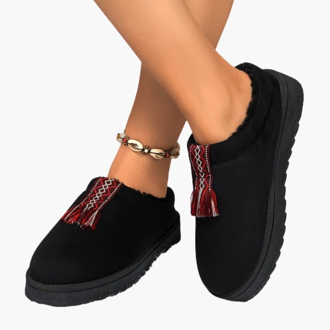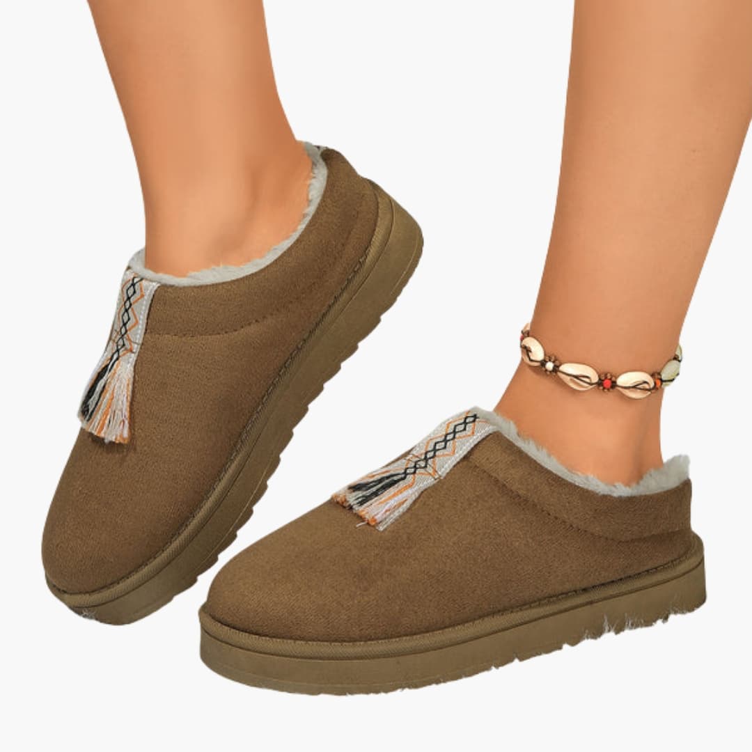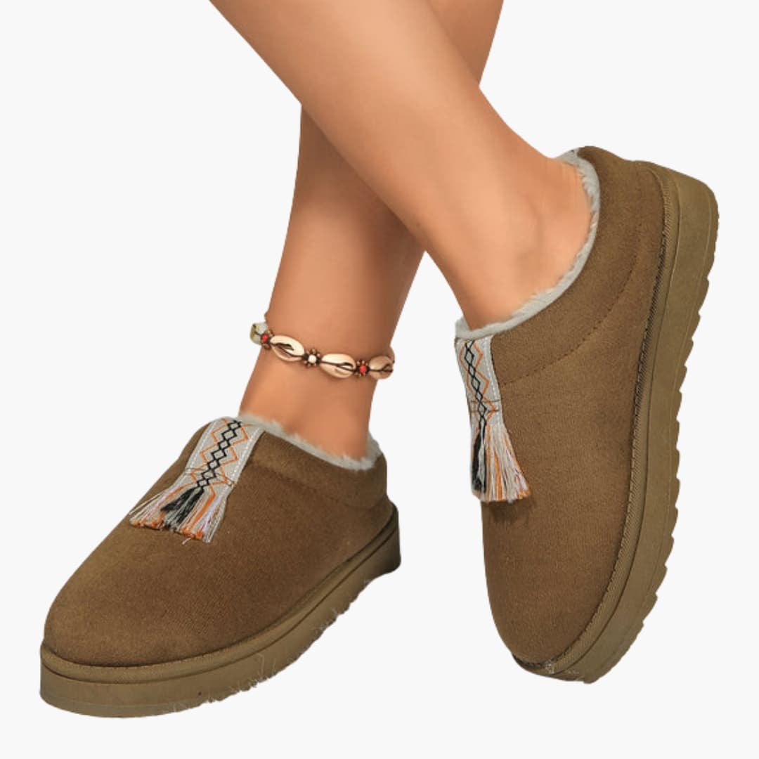 Damen Hausschuhe mit Reißverschluss und Fleecefutter