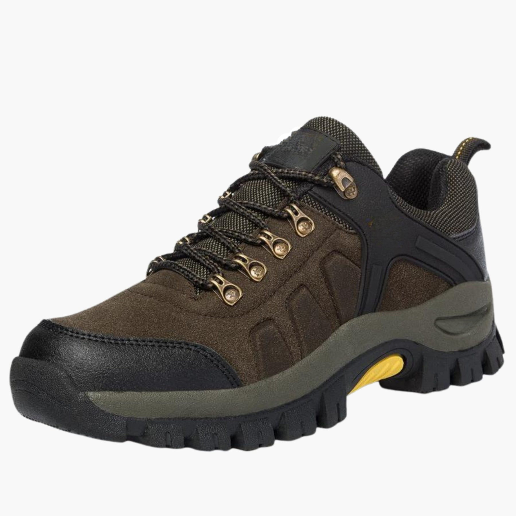 Diese Herren-Wanderschuhe bieten ein verstärktes Obermaterial mit Schnürverschluss für festen Sitz. Die profilierte Laufsohle sorgt für gute Bodenhaftung auf verschiedenen Untergründen, während der gepolsterte Schaft zusätzliche Stabilität im Knöchelbereich bietet. Eine praktische Zuglasche an der Ferse erleichtert das An- und Ausziehen – geeignet für unterschiedliche Outdoor-Einsätze.